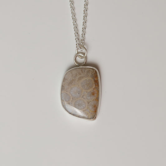 Sterling Silver Pale Fossilised Coral Pendant