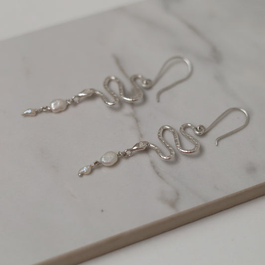 Sterling Silver Serpent Pearl Earrings