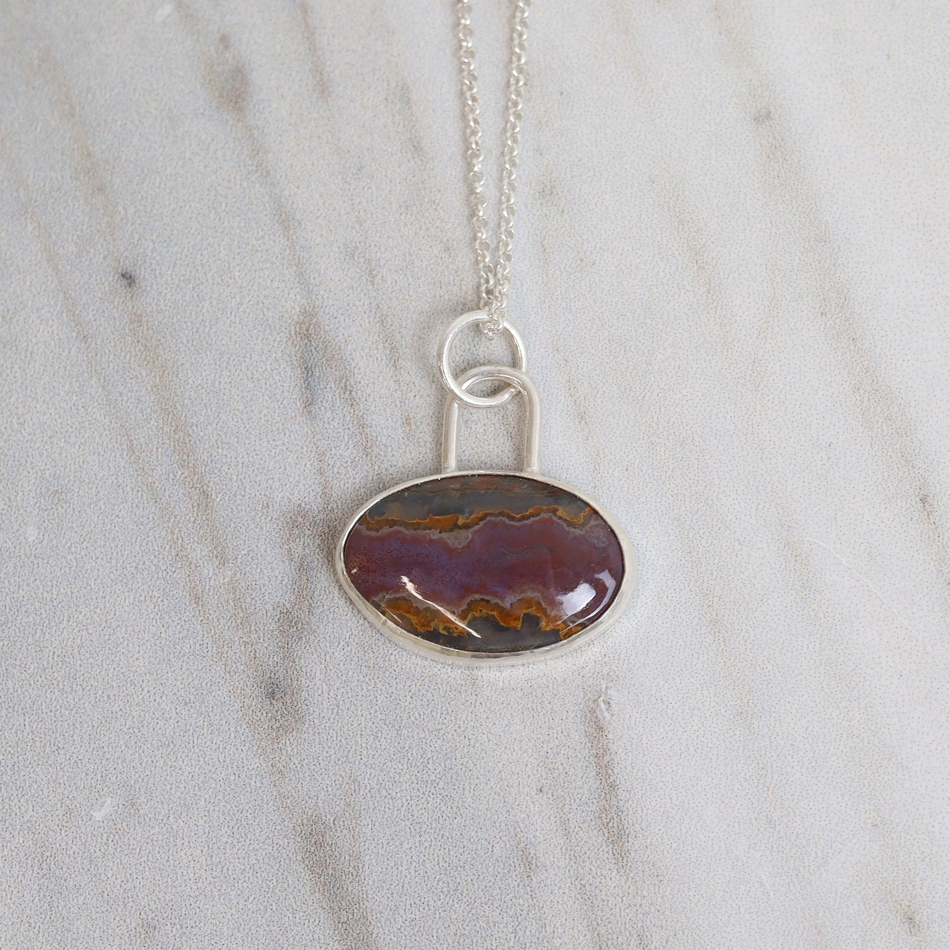 Sterling silver lace agate oval pendant. One of a kind piece.